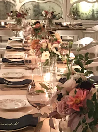 Manena has been arranging flowers her entire life. She grew up spending summers in her mexican mother’s flower shops in the UAE , an unlikely origin for a New York floral practice, and a formative one. She went on to build the floral studio at ABC Carpet & Home, train a dedicated team of florists, and develop a department that became central to the store and ABC restaurants identity as an experiential destination. Since then she has designed flowers for uncountable events, weddings, restaurants, corporate spaces, and private homes. She delights the most in dramatic seasonal sculptural installations that are the signature of her practice: pieces conceived not as decoration but as objects, built to transform a room.